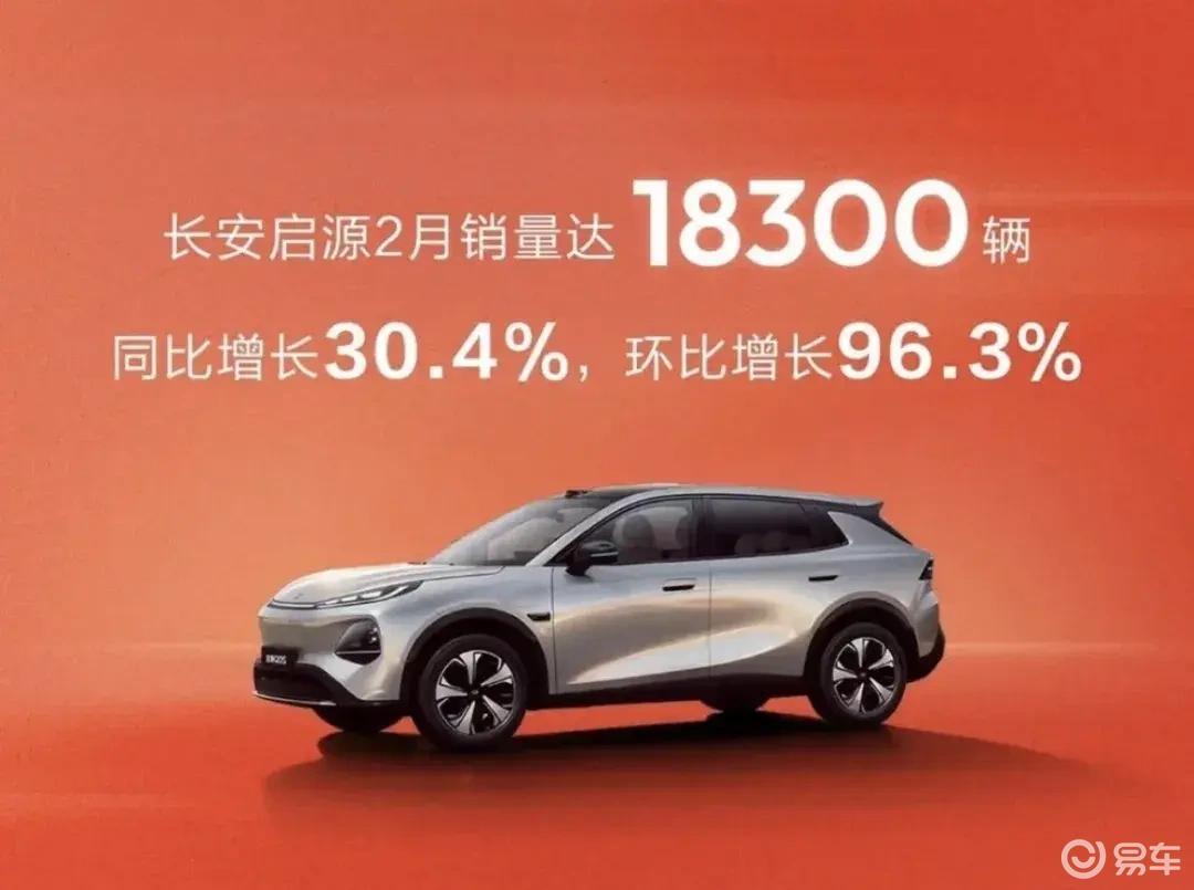 如果说燃油车是“压舱石”,那新能源板块就是长安转型的“发动机”,且各品牌的表现呈现出清晰的梯队感。长安启源2月销量18300辆,同比增长30.4%,环比更是暴涨96.3%,这样的增速背后,是启源A06等车型对15万级主流新能源市场的精准卡位。作为长安面向主流家庭的新能源品牌,启源的爆发,填补了长安在“亲民级新能源”领域的空白,与深蓝形成了差异化互补。