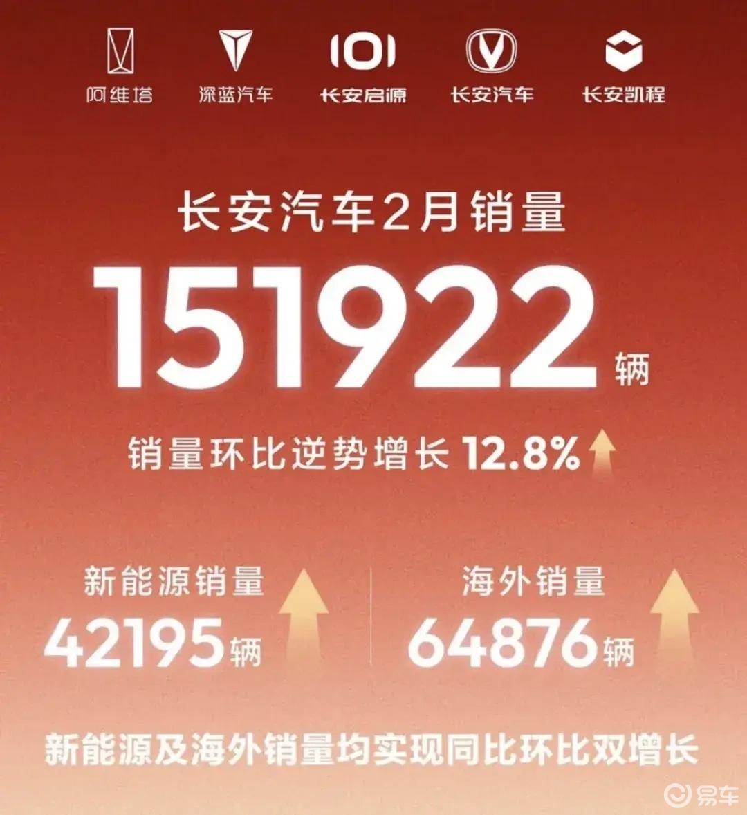 2月的中国车市,始终绕不开“节后淡季”的惯性。终端到店率回落、消费决策周期拉长,多数车企的环比数据都出现不同程度波动。而长安汽车交出的151922辆成绩单,以及12.8%的环比增幅,在这样的行业背景下,很难用“淡季冲量”简单概括。拆解这份数据,更像是一次对企业转型节奏、产品矩阵韧性的全面体检。
