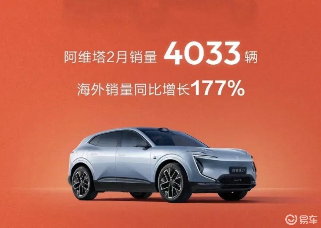 高端市场的阿维塔,虽然2月整体销量4033辆,在集团销量中占比不高,但海外销量同比增长177%的数字,却藏着长安高端化的新突破口。